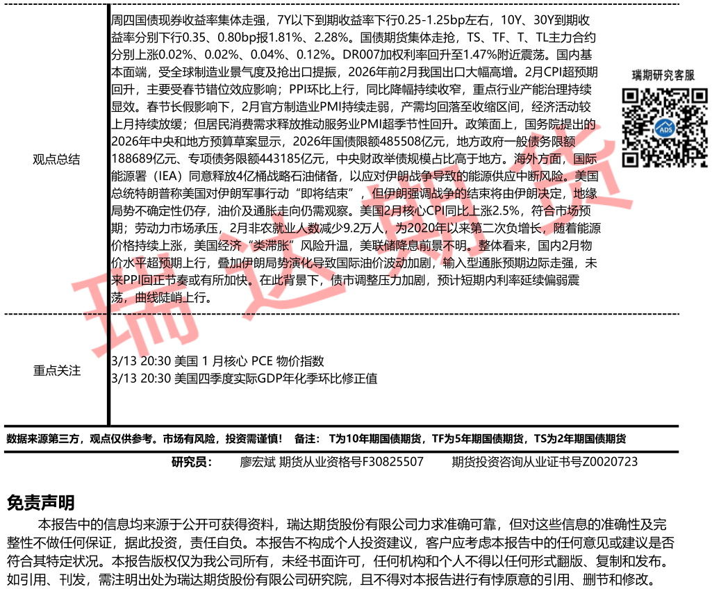 2026-03-12瑞达期货国债期货市场每日全景分析报告20260312