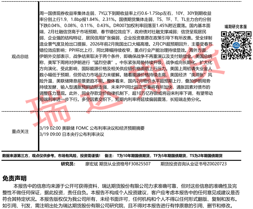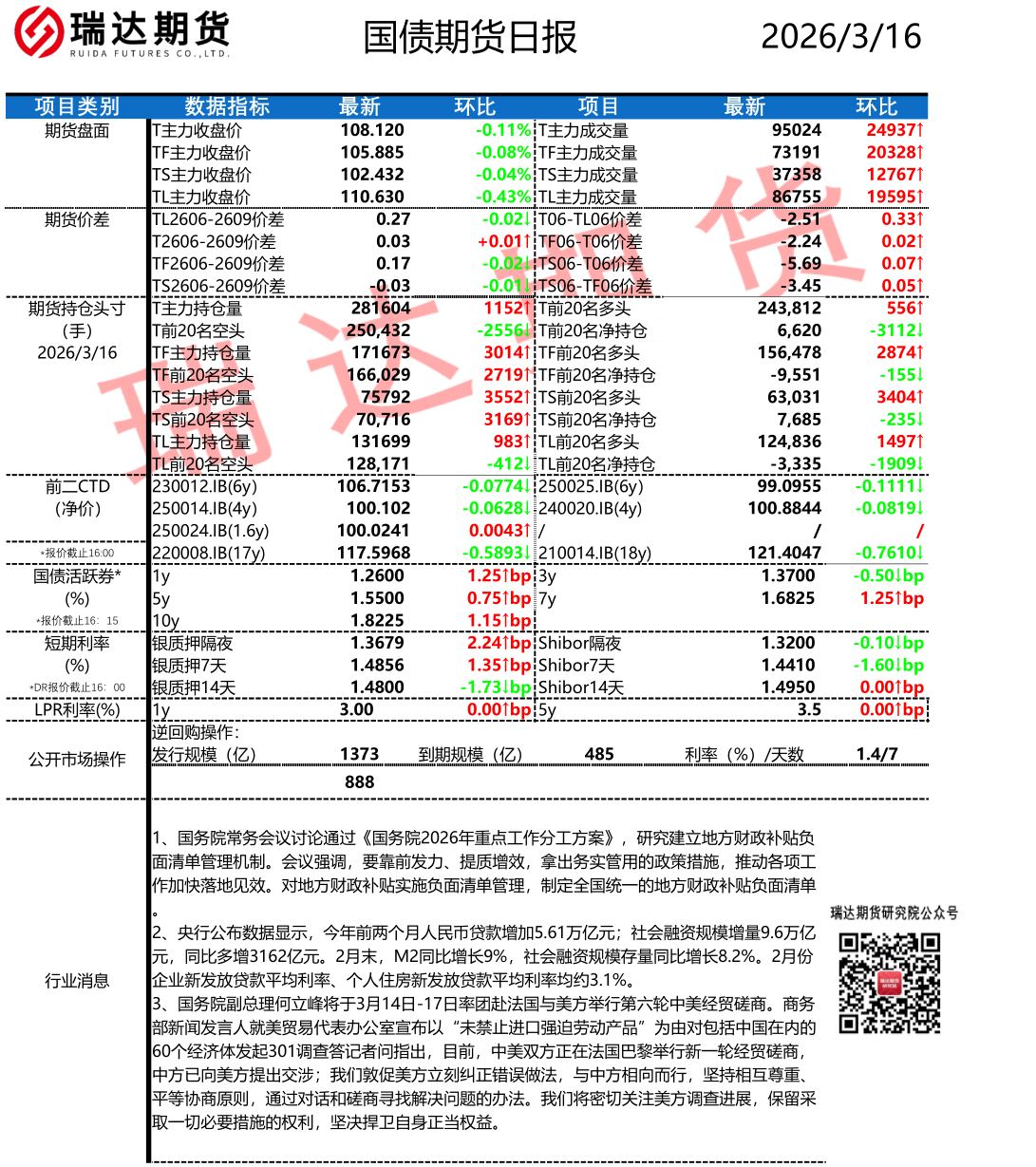 2026-03-19瑞达期货国债期货市场每日全景分析报告20260319