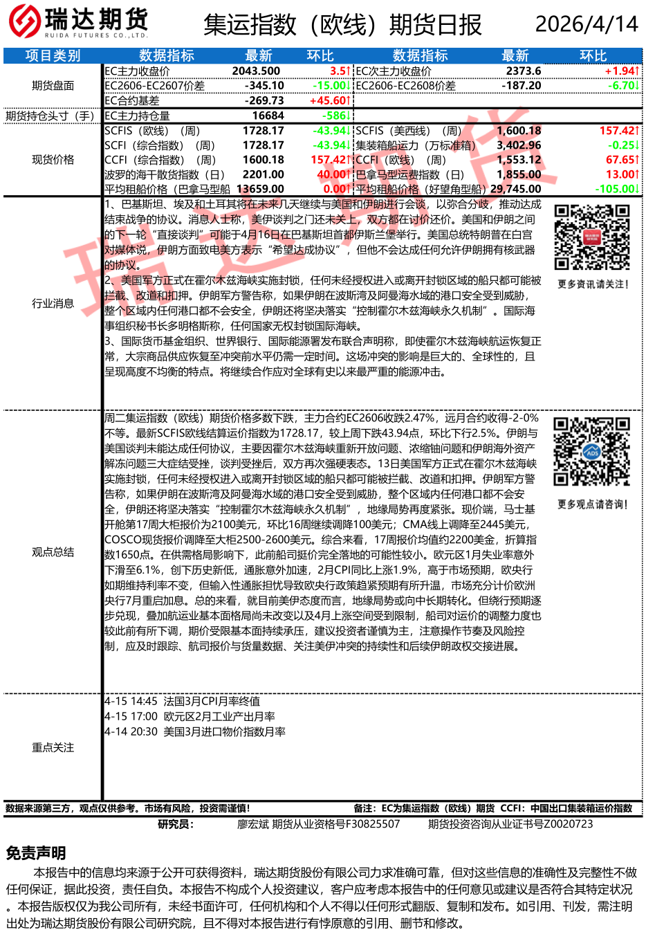 2026-04-14瑞达期货股指期货市场每日全景分析报告20260414