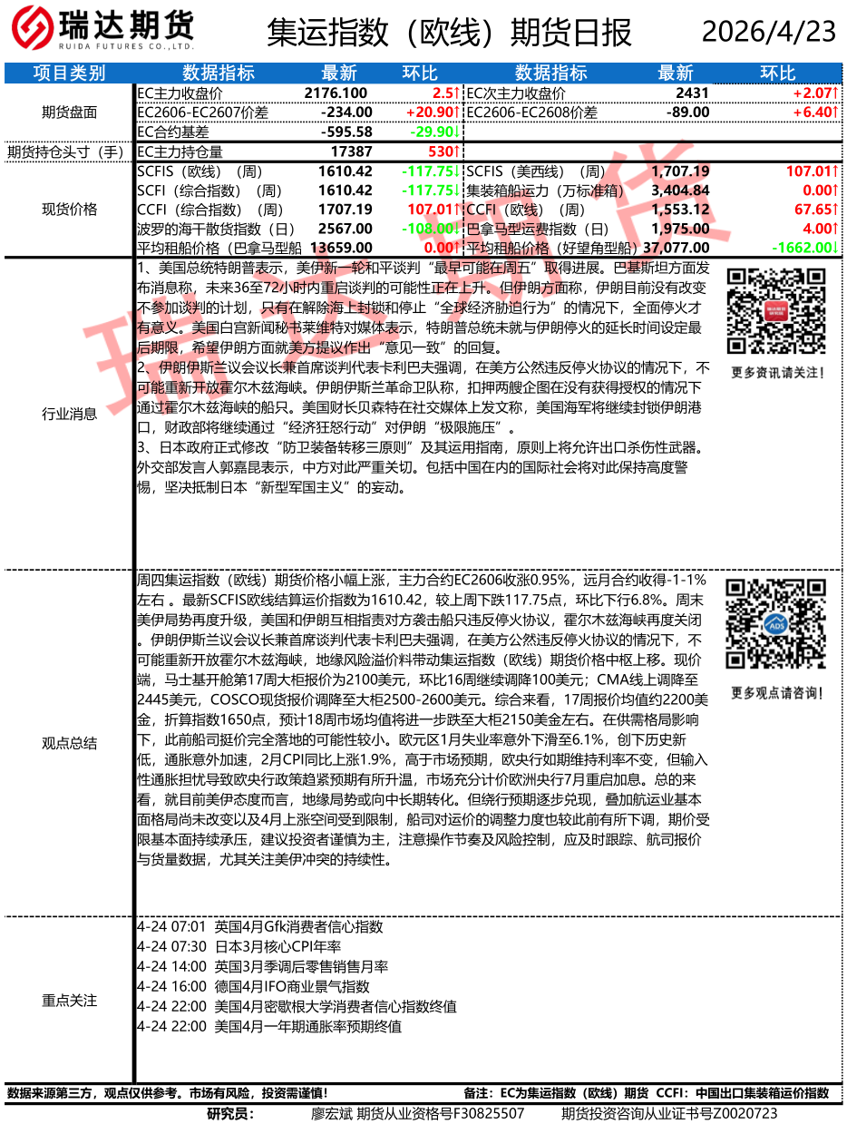 2026-04-23瑞达期货集运指数(欧线)期货市场每日全景分析报告20260423