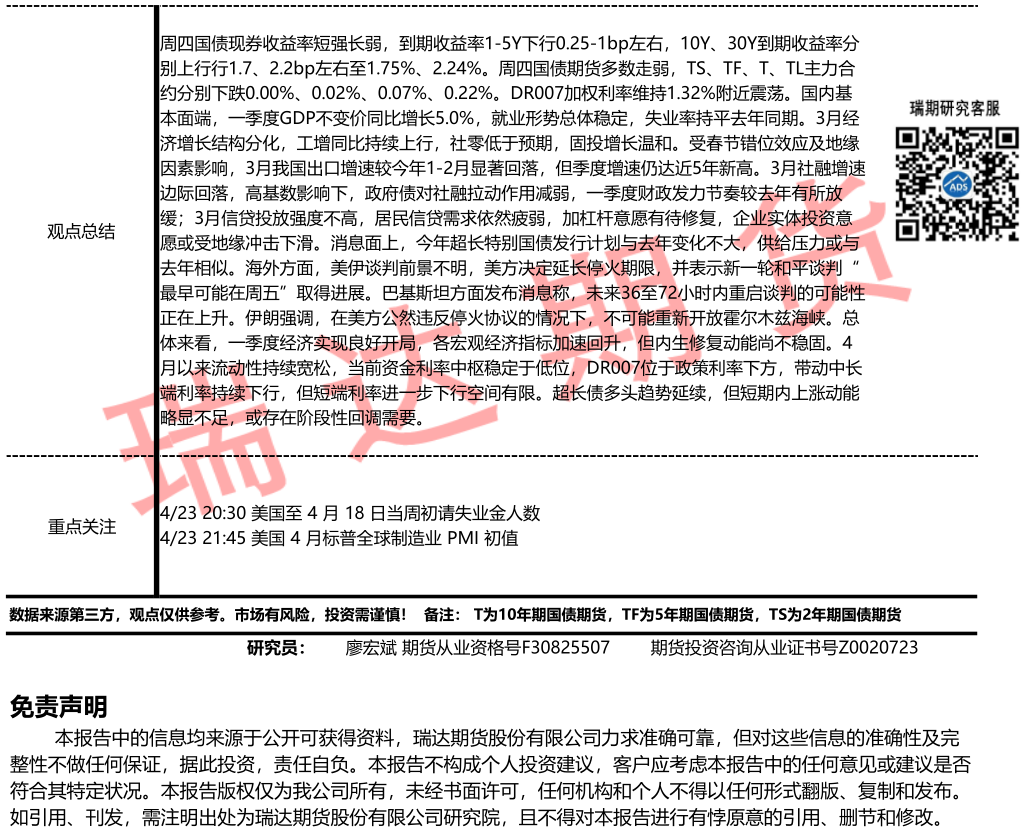2026-04-23瑞达期货国债期货市场每日全景分析报告20260423
