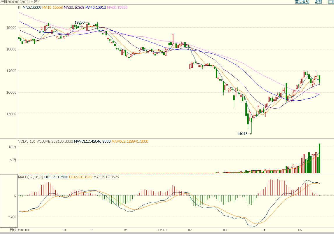 沪锌2007合约此前持续冲击17000关口无果,上方压力显现。近期MACD红柱持续萎缩,说明多头量能衰竭厉害。而周四的中阴K线基本确认了调整的展开,预计后期可能调整到回抽60日均线,甚至是15820附近。
