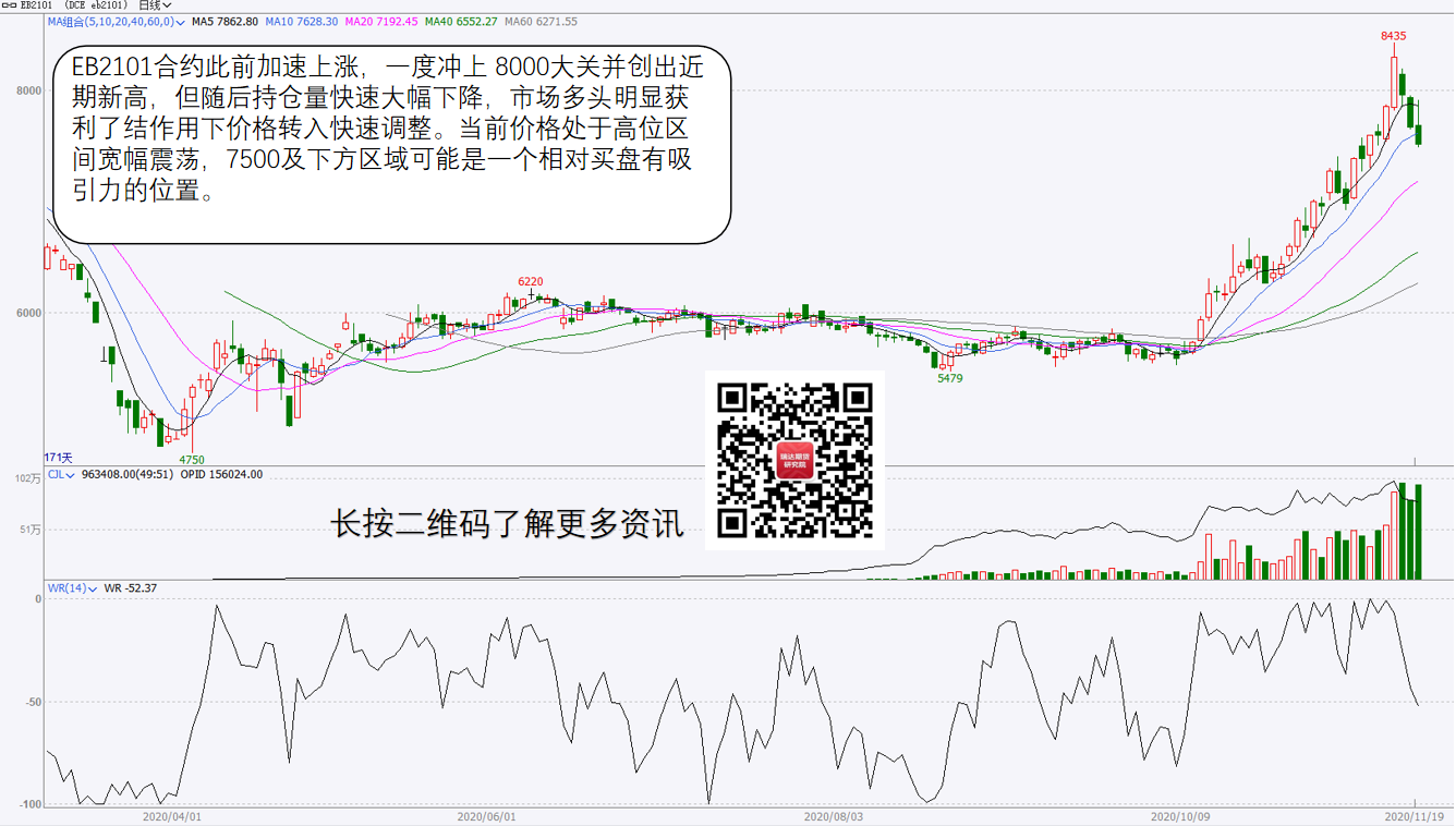 图一:EB——区间宽幅震荡,7500或有支撑