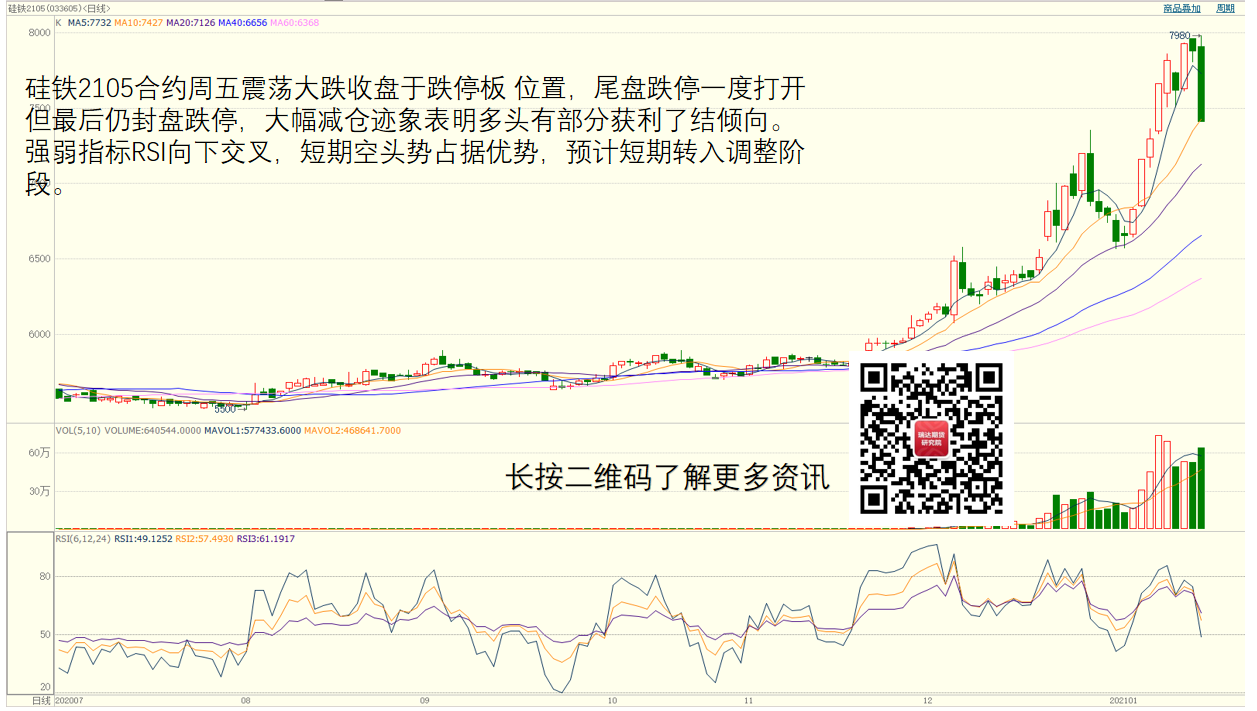 图二:硅铁——大幅减仓回落收于跌停板位置