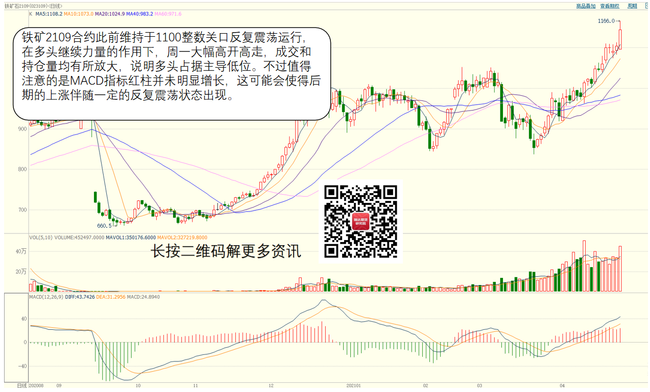 图一:铁矿——多头站上1100关口,但后期上涨过程可能会有反复