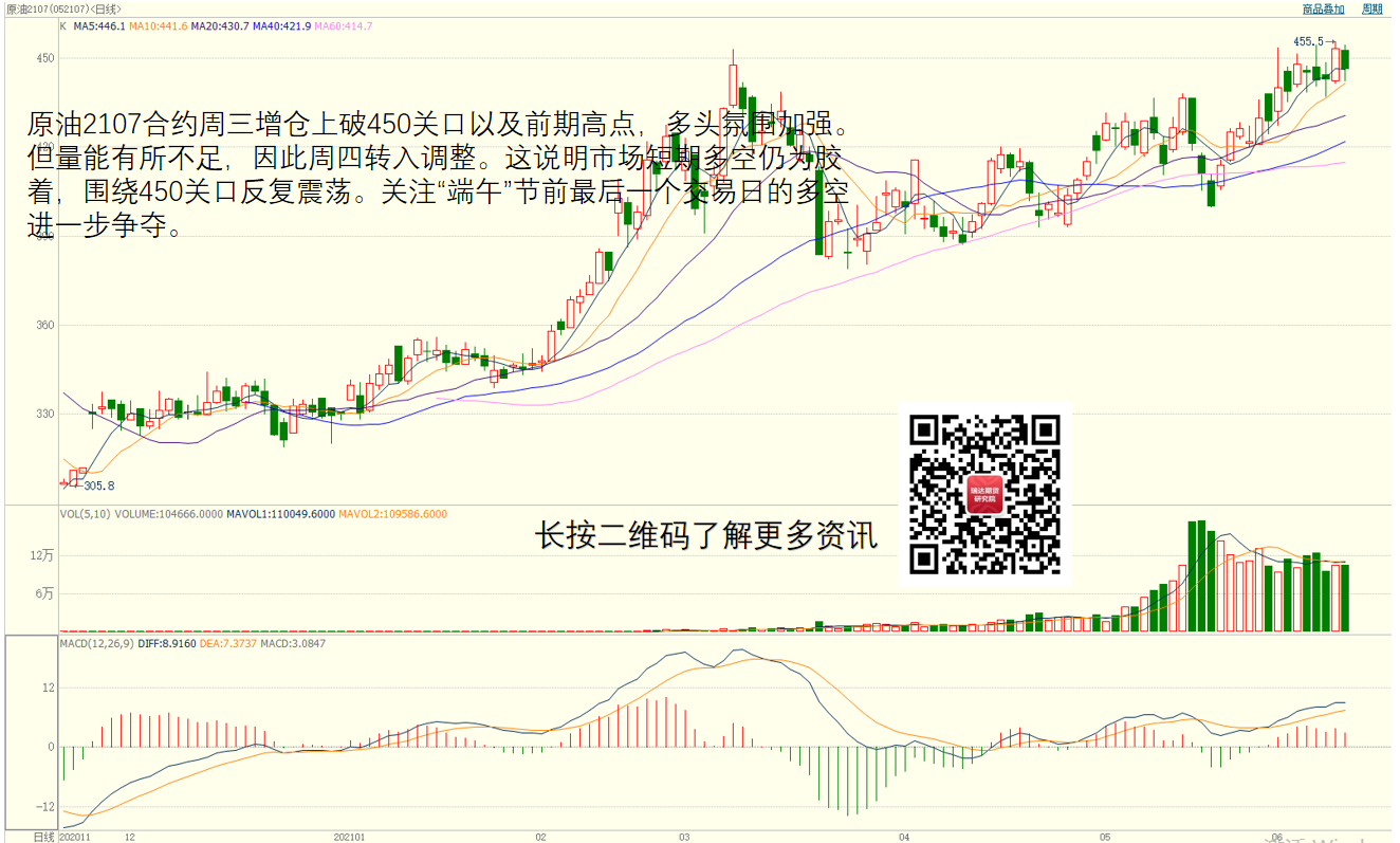 图二:原油——450多空反复争夺