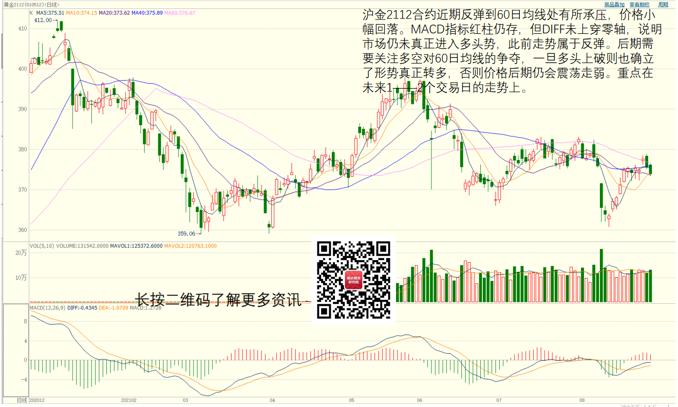 图二:沪金—— 60日均线现压力,争夺重点在2个交易日内