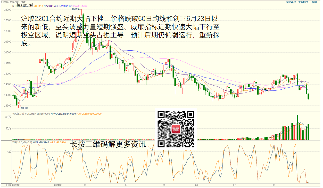图一:沪胶——弱势运行,重新探底