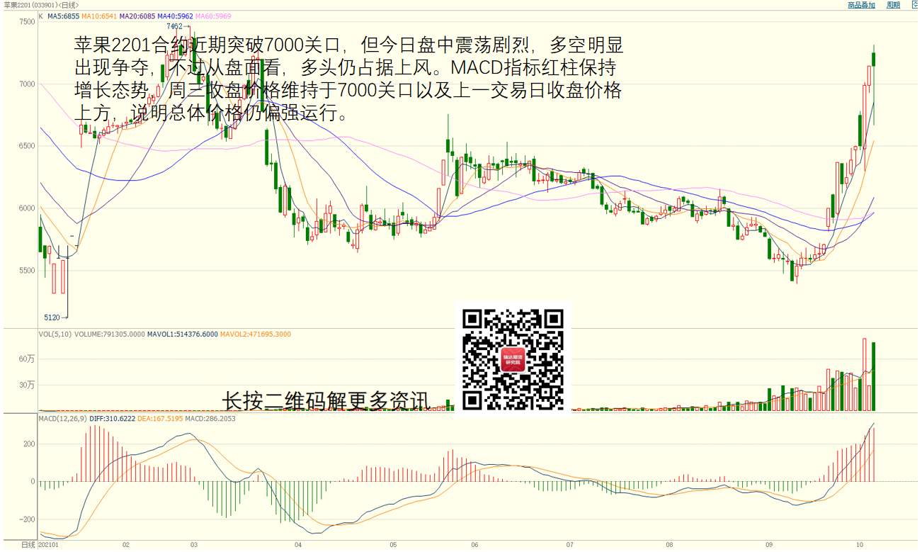 图一:苹果——7000关口强势震荡,多头仍占上风