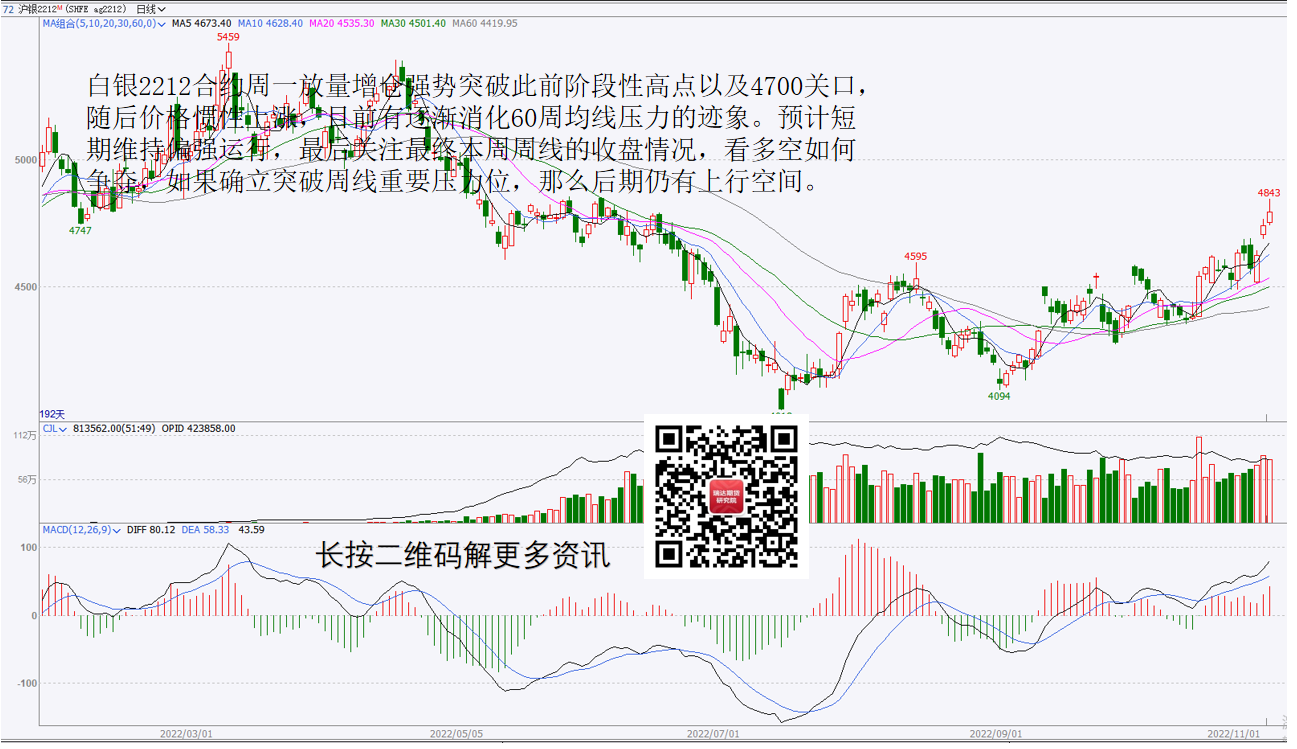 图一:白银——强势上涨,但注意60周均线压力下的争夺