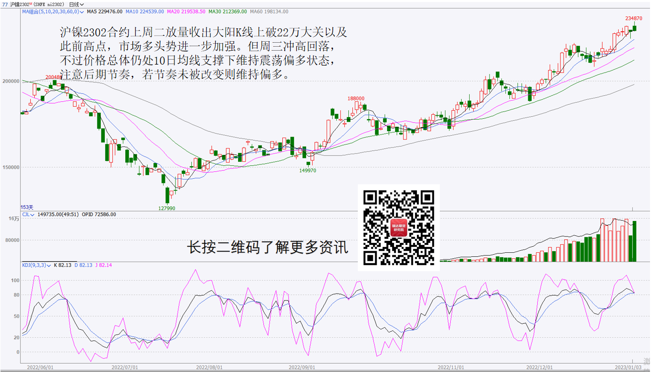 图一:沪镍——震荡偏多,关注10日均线支撑节奏
