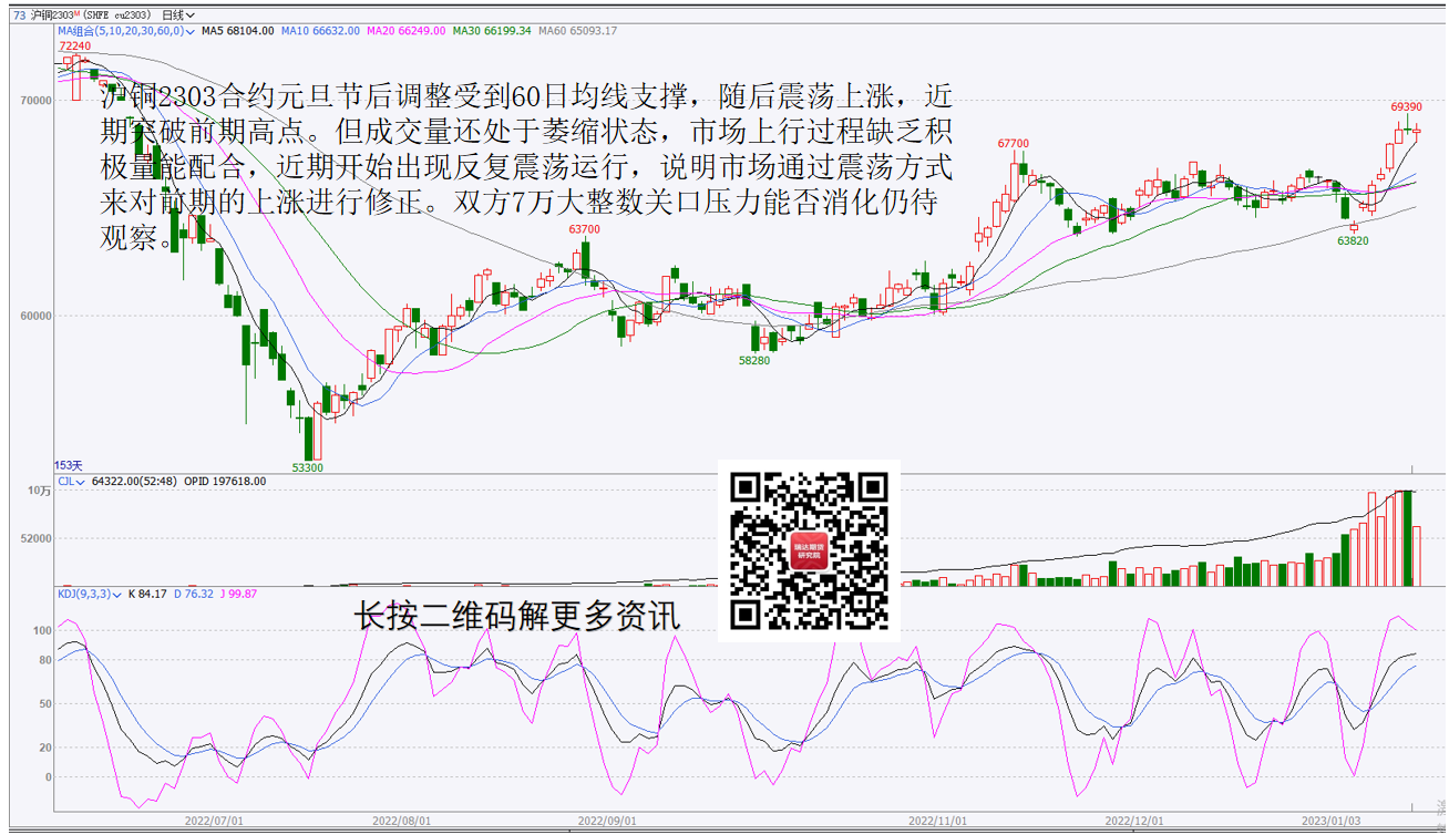 图一:沪铜——7万关口压力下震荡,多空争夺中