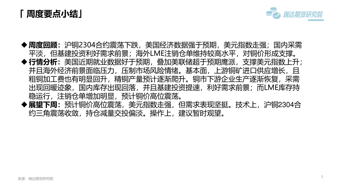 免责声明:本报告中的信息均来源于公开可获得资料,瑞达期货股份有限公司力求准确可靠,但对这些信息的准确性及完整性不做任何保证,据此投资,责任自负。本报告不构成个人投资建议,客户应考虑本报告中的任何意见或建议是否符合其特定状况。本报告版权仅为我公司所有,未经书面许可,任何机构和个人不得以任何形式翻版、复制和发布。如引用、刊发,需注明出处为瑞达期货股份有限公司研究院,且不得对本报告进行有悖原意的引用、删节和修改。
