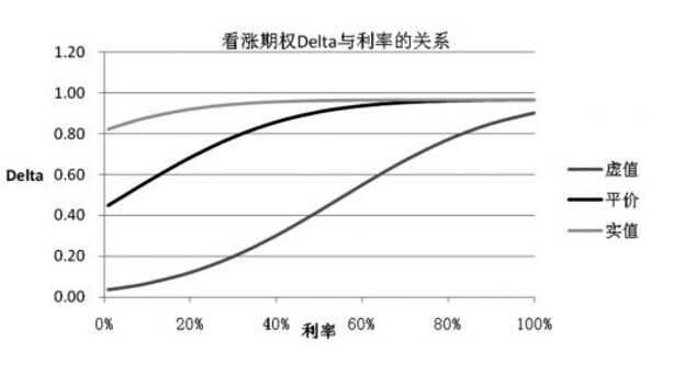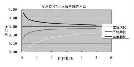 以到期日为例,合约到期时,无论是实值、虚值,还是平值期权均无时间价值,所以对实值期权而言,正股价每上涨1元,都将反映在期权价格中,因为期权价格全部为实值额,即delta为1。对虚值期权而言,尽管正股价格出现小幅上涨,但仍无法使期权有价值,所以表现出对股价上涨的“麻木”,delta为0。平值期权居中。