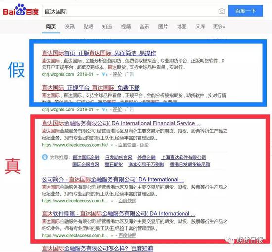 期货日报记者通过询问市场部分投资者发现,“钓鱼网站”是罪魁祸首之一。以百度搜索为例,输入境外经纪商的关键字,首先显示的条目大都是仿制官网的虚假网站,而真正的官网链接往往被“排挤”在后。对于真假官网,不仅期货新手难以分辨,甚至“期货老兵”也频频上当。