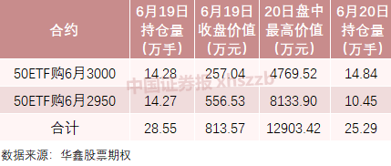 Wind数据显示,6月19日,50ETF购6月3000合约持仓量为14.28万手,按当日收盘价0.0018元计算,合约价值为257.04万元。