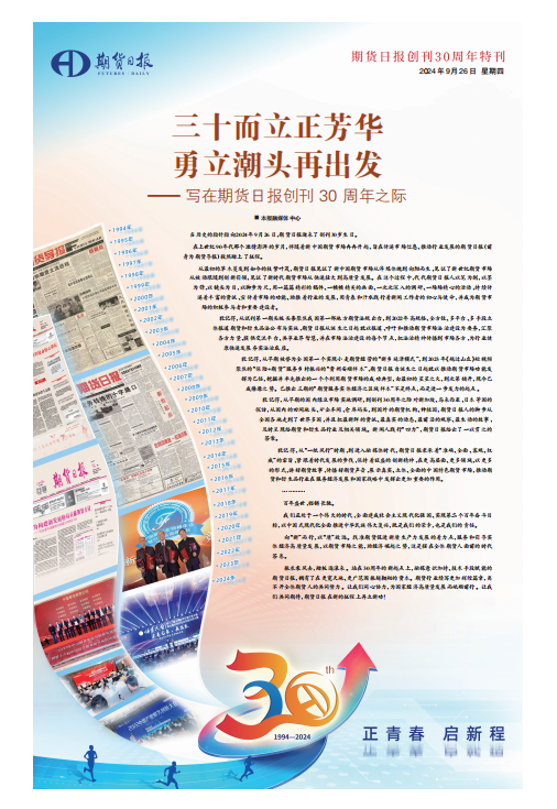 当历史的指针指向2024年9月26日,期货日报迎来了创刊30岁生日。