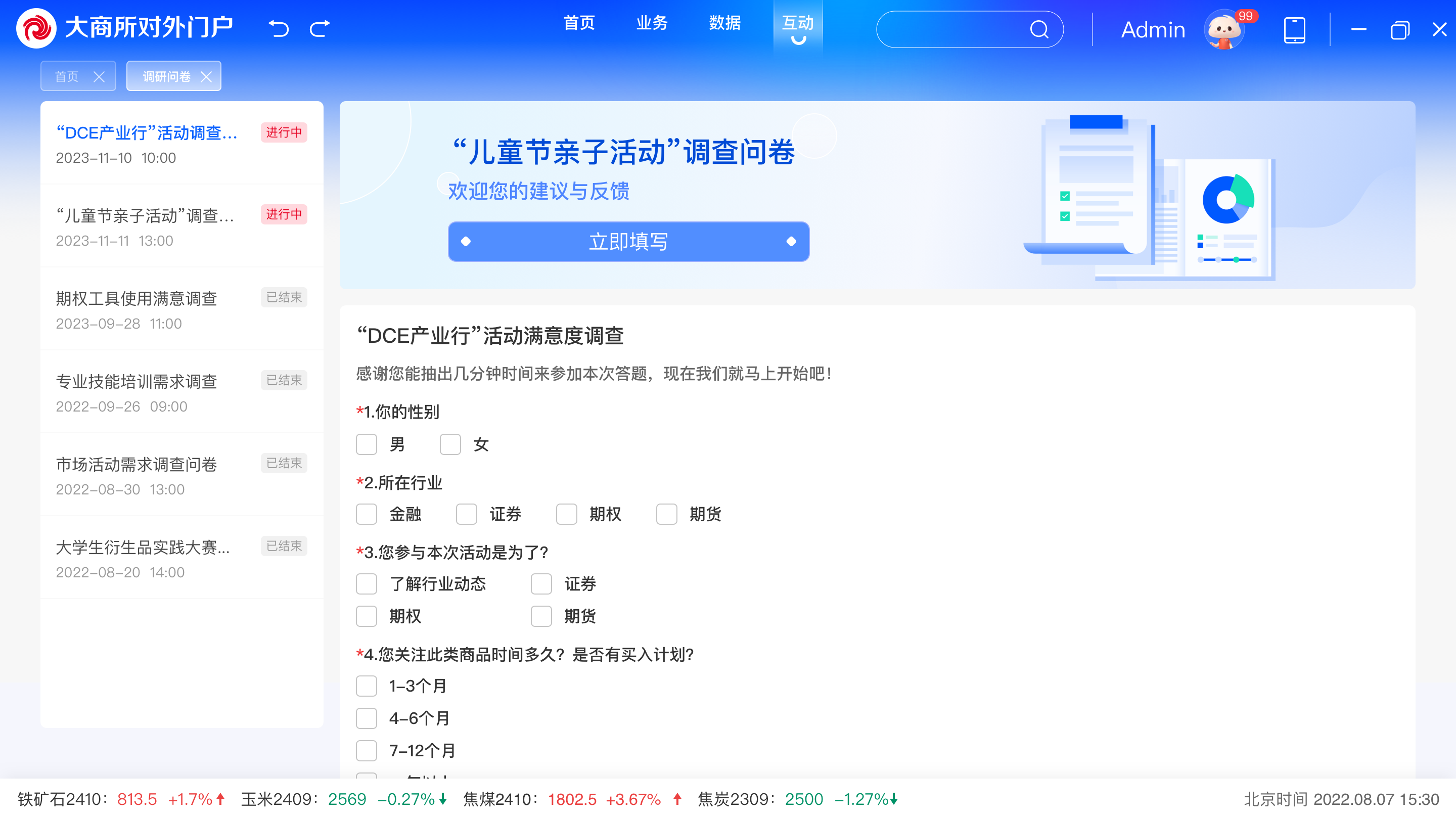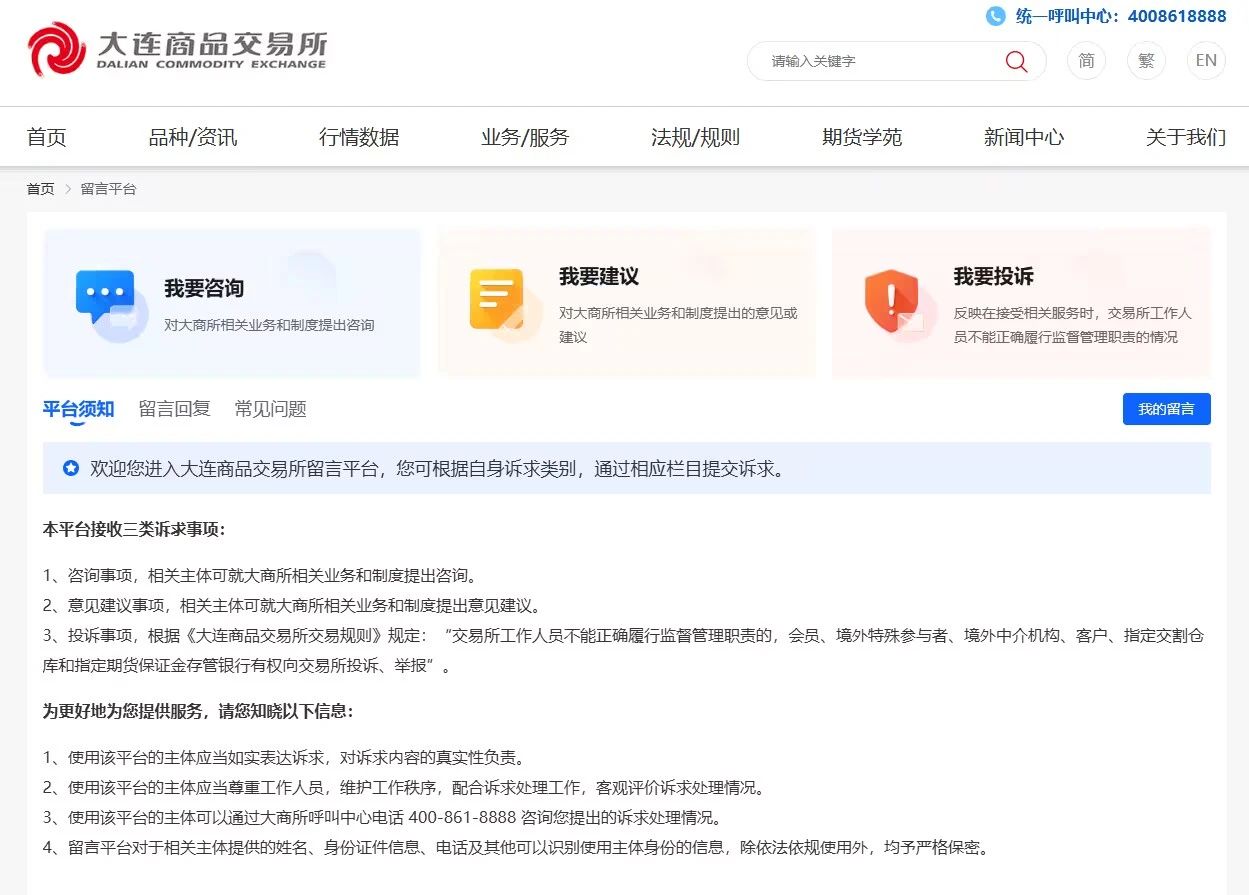 大商所对外门户以提升业务办理效率、提高市场服务水平、满足市场参与者多元化需求为目标,坚持“科技驱动、用户至上”的总体原则,根据期货市场“生态圈”中不同市场参与者需求,提供多项业务办理的集成化服务,并通过支持APP、电脑客户端及网页等多渠道访问,实现信息汇聚、直达客户、消息驱动、便捷办理,为不同类别的用户打造专属、高效的“一站式”业务服务平台。