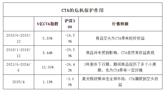而且当股债遭遇系统性风险,比如金融危机、地缘冲突、政策突变而大幅回撤时,CTA策略因其捕捉下行趋势的能力和与股债的低相关性,更有可能提供正回报或较小的负回报,成为组合的“压舱石”或“危机阿尔法”。