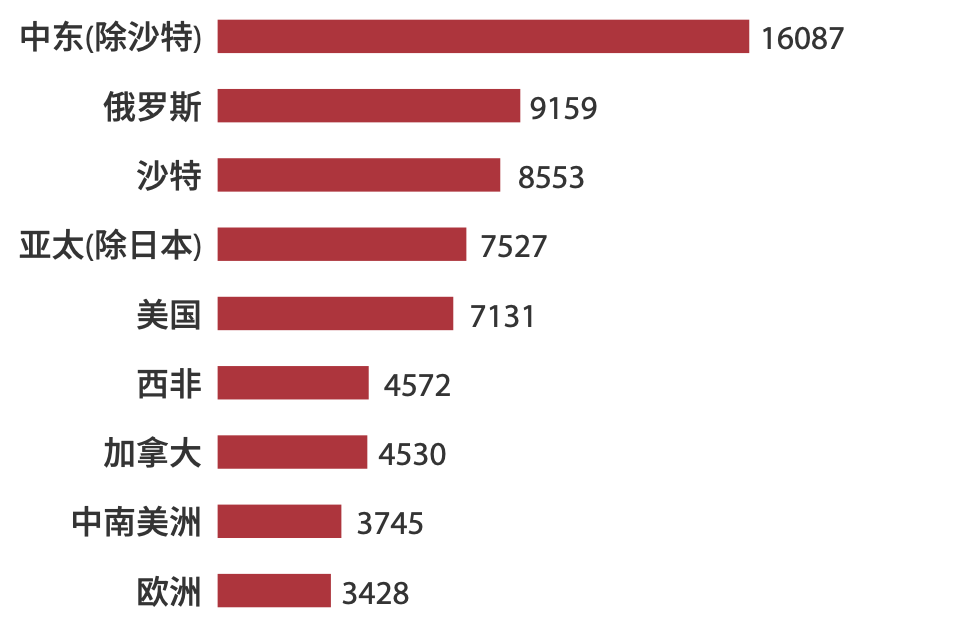 来源:《BP世界能源统计年鉴2019》 单位:千桶/日