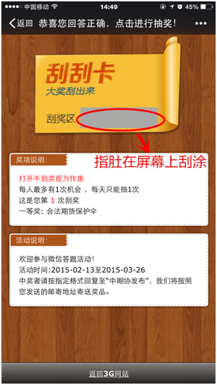 第二步:输入答案后,系统判断答题全部正确即进入“刮刮卡”抽奖环节;
