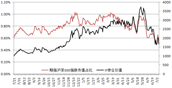 图4IF持仓市值与标的指数成份股市值比变动情况