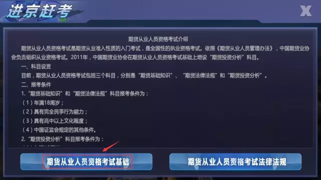 进京赶考有三大板块:【期货从业人员资格考试】【期货投资分析考试】【基金从业人员资格考试】。