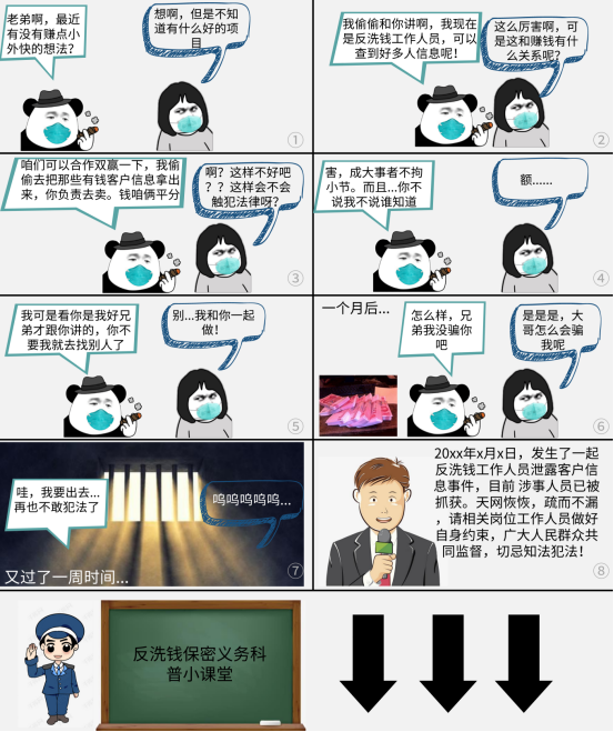 8.反洗钱工作人员配合中国人民银行调查可疑交易活动等有关反洗钱工作信息应予以保密,不得违反规定向客户和其他人员提供。
