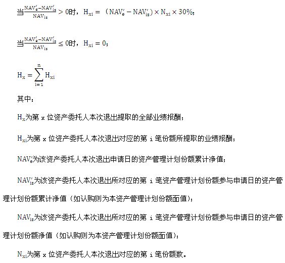 当资产委托人退出对应份额持有期间的收益高于0%(不含),提取该对应份额收益的30%作为业绩报酬。