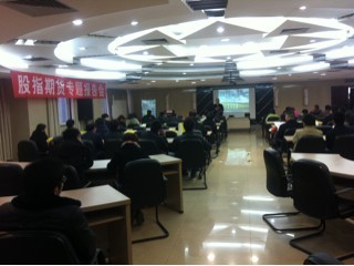2011年12月18日下午,由中国金融期货交易所主办、瑞达期货经纪有限公司成都营业部承办的《欧债危机下的投资机会---股指期货专题报告会》报告会,在成都市顺城大厦13楼会议室圆满举行。本次研讨会约150人参加。