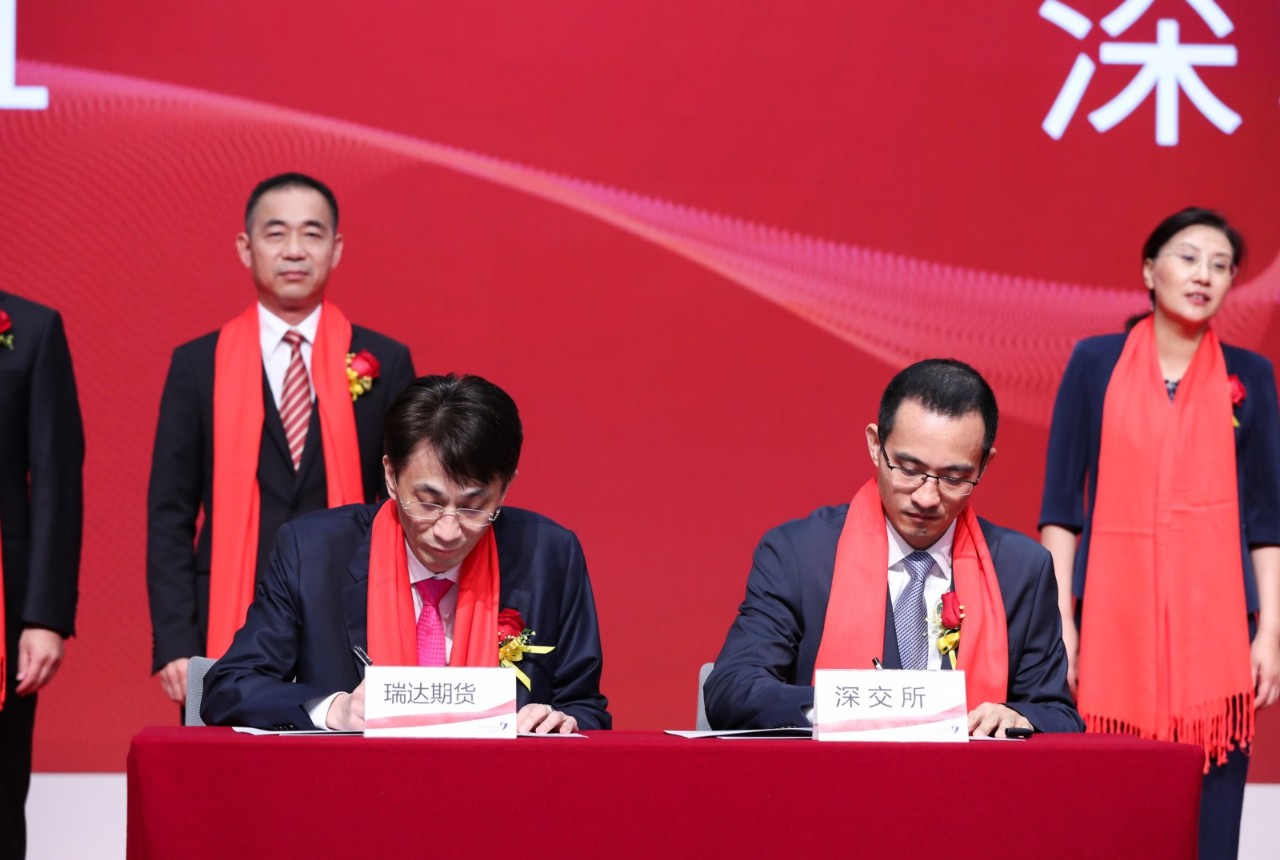 深交所副总经理彭明与瑞达期货董事长林志斌签订《证券上市协议》