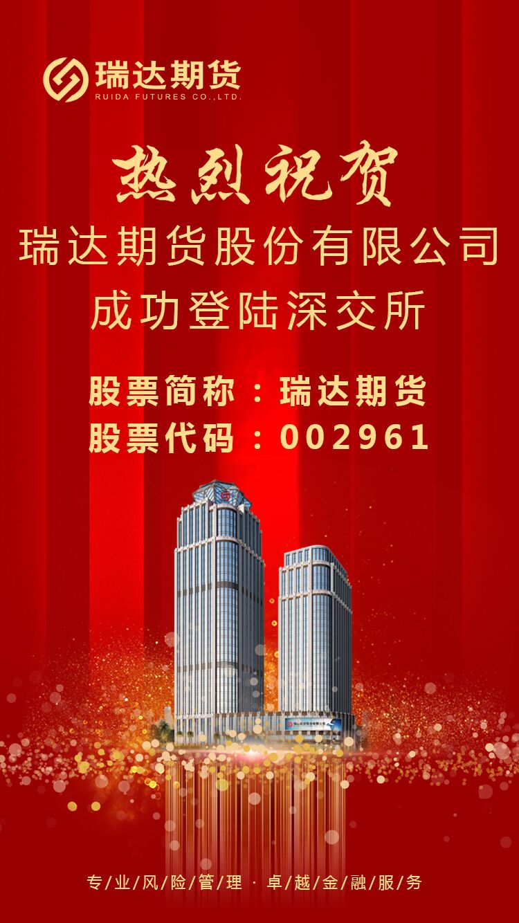 9月5日,瑞达期货股份有限公司(股票简称:瑞达期货,股票代码:002961)在深交所正式挂牌上市,首次公开发行4,500万股股票,保荐机构为中信证券。