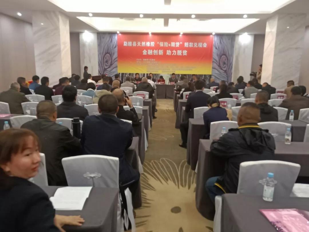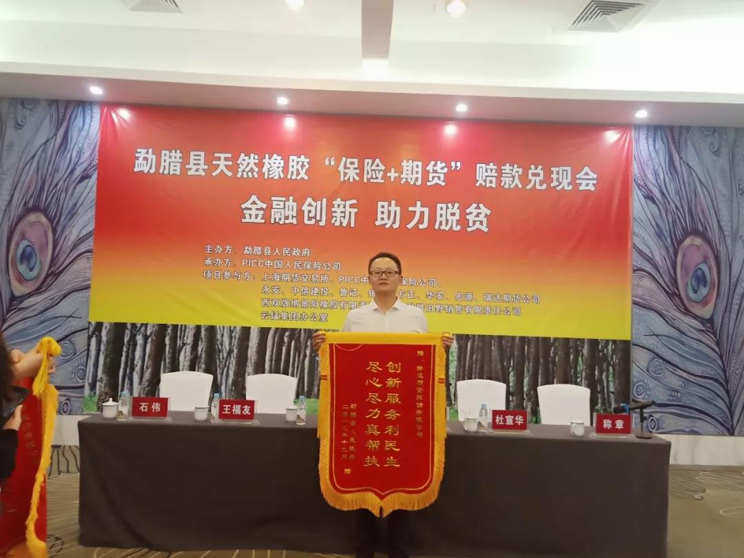 2019年12月20日,在上海期货交易所的支持下,由勐腊县人民政府主办的瑞达期货天然橡胶“保险+期货”精准扶贫项目理赔仪式在云南省勐腊县举行。本次瑞达期货扶贫项目,在赔款兑现会上共理赔64.4万元,惠及农户2770户,其中涉及建档立卡贫困户583户。