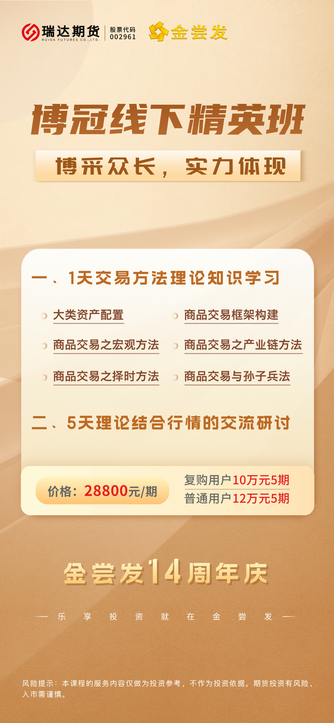 《博冠精英培训班》会手把手教会大家怎么去搭建商品交易的框架,怎么去进行择时,如何去做大类资产配置等等,适合想自己学习怎么搭建交易系统的朋友。