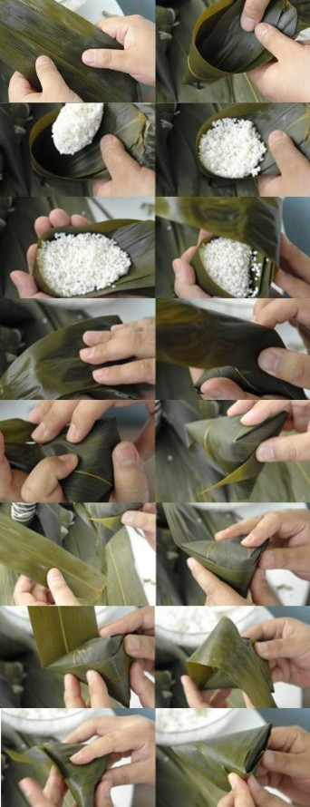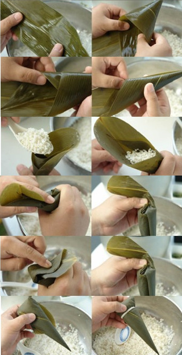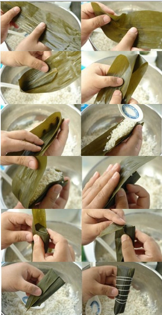 1. 注意粽叶的正反,光面的是在里面;