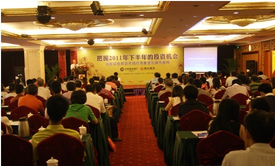 2011年7月9日下午,瑞达期货南昌营业部与建设银行洪都支行共同举办的 “把握2011年下半年的投资机会——当前证券期货市场行情展望与操作策略”会议在锦都皇冠酒店成功举办。本次会议主讲为瑞达期货投资总监张天勇和建行财富中心主任张亮,江西电视台三套《小刘理财》栏目、成功992电台以及大江网等各大媒体对本次会议进行了积极关注与大力支持。