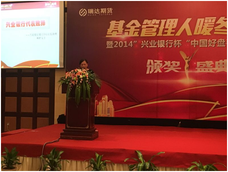 日前,兴业银行厦门分行联合瑞达期货在厦门帝元维多利亚酒店成功举行了“2014兴业银行杯中国好盘手实盘大赛”颁奖典礼。