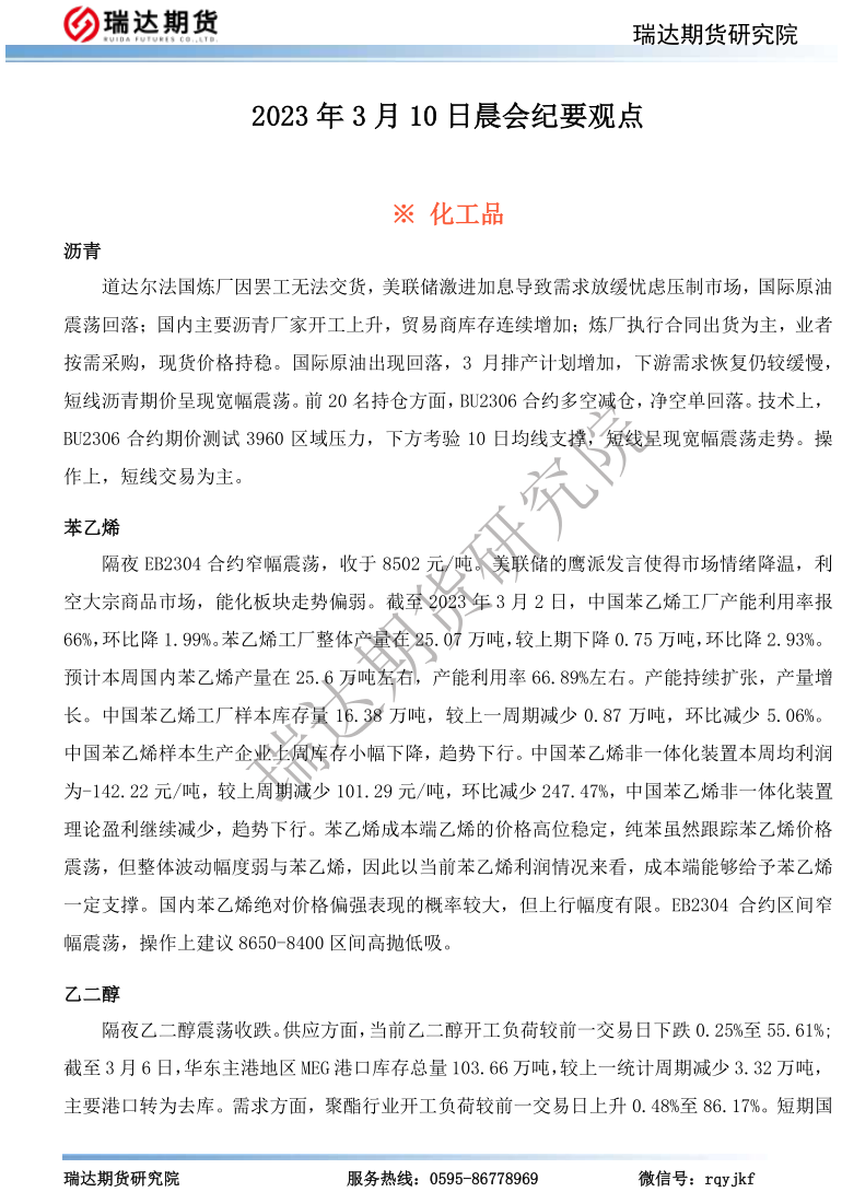 2026-03-19瑞达期货晨会纪要观点20260319