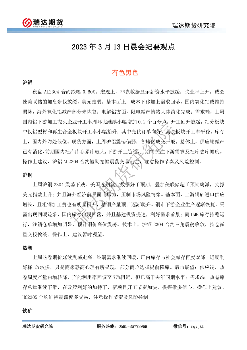 2026-03-19瑞达期货晨会纪要观点20260319