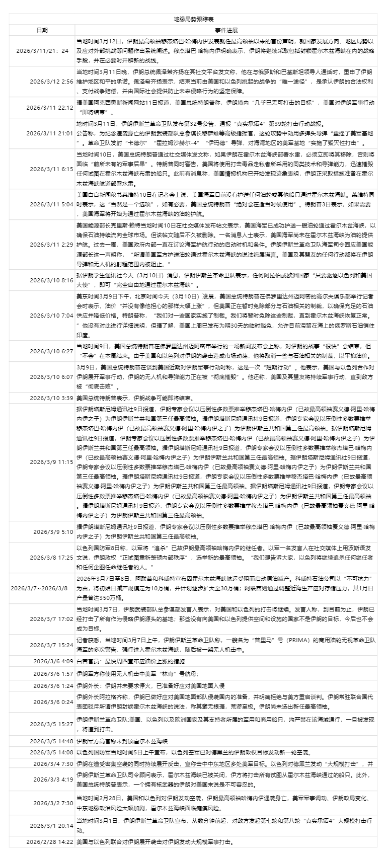 ※ 地缘局势跟踪表