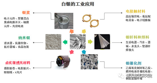 由于银具有几乎不可替代的特殊自然性能,在许多行业中应用广泛且占据重要地位。从电气开关、太阳能电池板到化学催化剂,均有白银的应用。日常生活中,手机、电脑等家用办公电器以及汽车都含有银的影子,白银供需结构中超过一半的需求来自于工业。