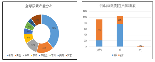 国内的尿素生产大多以煤制为主,国内大约 74%的尿素工厂均以无烟煤及烟煤、褐煤为原料,中国也是世界唯一以煤炭原料为主来生茶尿素的国家。国际上其他国家基本都以天然气为原料。因此煤炭价格波动对中国尿素价格的影响也是较为直接的,2015-2018 年国内尿素价格运行趋势基本与煤炭价格相似。