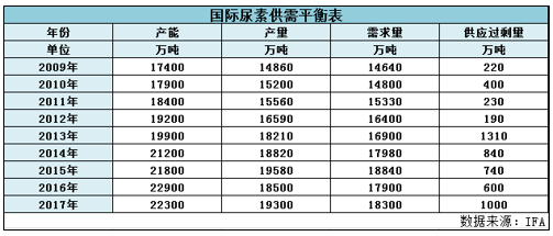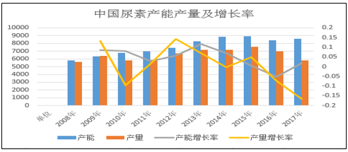 受页岩气革命影响,09年以来天然气价格大幅下跌,全球尿素产能持续扩张, 2014-2017年全球尿素的投产高峰,截至2017年全球尿素产能达2.23亿万吨,产量1.93亿万吨,供应过剩量达1000万吨。在09年到17年的9年时间里,尿素产能增幅达28.16%,产量增幅达29.87%,整体供应出现过剩局面,在2017年甚至开始出现负增长。