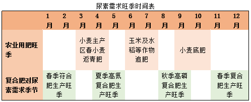 每年的1-4月份,是春耕时期,这一时期主要使用的是种肥和底肥,因此对于尿素的需求量相对不大,其需求占全年需求的30%左右;5-7月份,农作物进入生长期,这时候对于追肥的使用量较大,因此是尿素的消费旺季,这一阶段尿素的消费量占总消费量的一半左右。9-12月份,农作物进入收获期,北方在冬季大面积停耕,因此这一阶段尿素的需求量较少,是尿素的需求淡季。