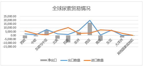 2017年全球尿素贸易量超过4000万吨,其中东欧与中亚、西亚、东亚是主要生产地也是主要输出地,西亚的年净出口量达到1653.8万吨,这是因为西亚地区虽然产量较高,但是农业并不发达;东亚虽然消费量大,但是拥有全球41%的产能,因此整体还是呈现供大于求的局面,在这种情况下,东亚的进出口量达到337万吨。至于非洲,由于经济落后,对于尿素的需求量有限,因此2017年能出口394.3万吨的尿素。尿素的净进口地区主要是南亚、拉美这种人口稠密,农业占经济比重较大,需要大量使用尿素的新兴市场地区和北美、西欧这种发达地区。