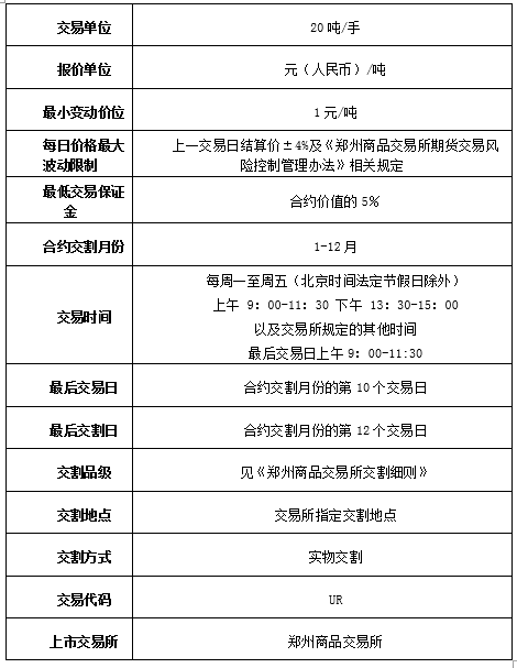 6.1 郑州商品交易所尿素期货合约(草案征求意见稿)