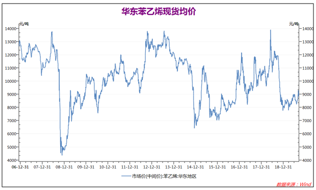 四、苯乙烯价格走势分析从大的供需格局来看,未来2年我国将面临国内产能井喷,而需求跟进不足,苯乙烯产能逐渐过剩的局面。随着国内民营炼化一体化装置稳步推进,配套下游苯乙烯装置或在未来2年内逐步建成投产,粗略估计19-20年我国计划新增苯乙烯超过600万吨。
