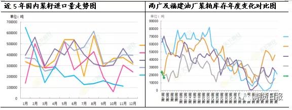最近几年国内菜粕供应结构和消费需求发生新变化。国家粮油信息中心信息服务处处长张立伟介绍说,具体来看,第一、国产菜籽几乎全部用来生产浓香菜油,导致其生产的菜粕在饲料养殖行业应用受到限制,国内菜粕供应主要依靠进口菜粕和进口菜籽生产的菜粕。第二、华南沿海地区菜粕流向内地,国内进口菜粕到港主要集中在华东沿海地区,国产菜粕减少导致进口菜粕数量不断增加。第三、可用于期货交割的菜粕只有进口菜籽生产的菜粕,中加关系变化导致进口加拿大菜籽数量大幅下降,可供期货交割的菜粕数量大幅减少。第四、进口菜籽和进口菜粕常年供应,水产饲料需求季节性较强,菜粕价格受季节性影响更加明显。第五、受菜粕供应结构发生变化的影响,水产养殖行业不断调整配方,减少对菜粕的依赖,菜粕消费需求受豆粕价格和其他杂粕的影响越来越大。