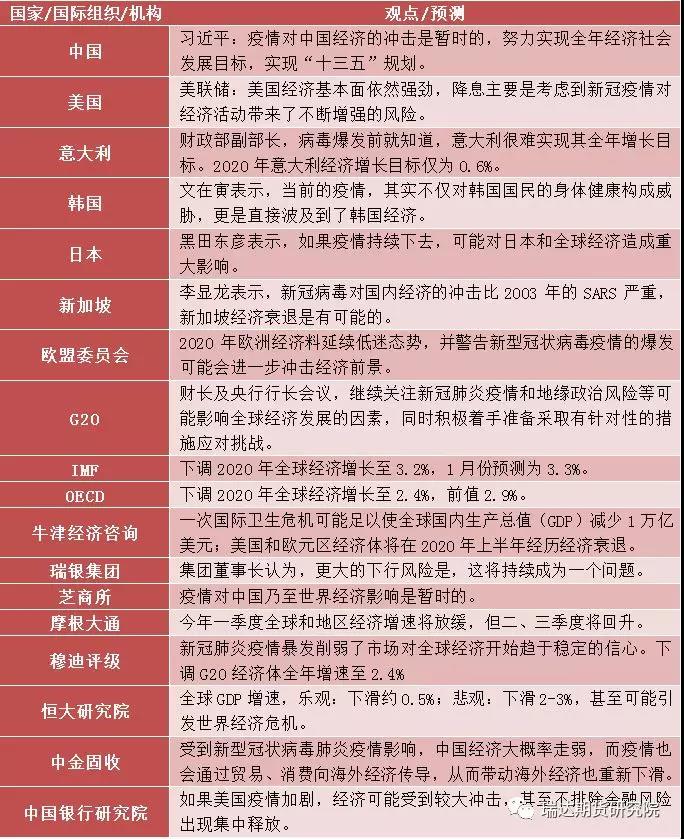 市场影响。上半年全球需求减弱已经无法挽回。需求减弱,利空能源和有色。货币政策宽松,利好黄金和各国国债。全球疫情拐点到来之后,这些资产才会转向。此次全球股市预计将出现类似于03年非典时亚洲市场的走势。反观中国A股,在国内疫情向好发展以及刺激政策支撑下,A股市场受外部因素的影响预计有限,有望保持较强的韧性,但振幅或将加大。美元指数会走出先急跌后缓慢上行的行情。欧元、英镑、日元的基本面较差,难以支撑货币强势。人民币尚无大跌风险,国内经济预计增速不会下滑太严重,能够支撑人民币的稳定。