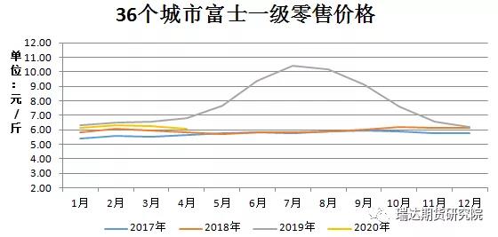在水果市场当中,当某一种类水果价格变化明显,就会引发“xx自由”的话题,比如“车厘子自由”。目前苹果期货价格从4月下旬开始“一飞冲天”,主要因各机构对新季苹果减产炒作引发。今年现货市场一季度36个城市一级富士苹果零售价格亦维持在6元/斤以上高价,与其他水果相比,无明显价格优势,那么新季“苹果自由”是否能够实现呢?(苹果自由可简单理解为一定金额下可购买更多数量的苹果)